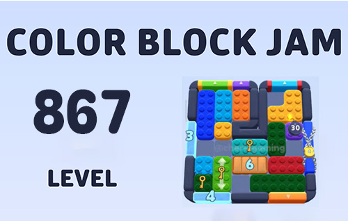 Color Block Jam Level 867 introduces a tricky puzzle setup with chained blocks, multiple keys, and a countdown bomb. The main challenge lies in carefully unlocking keys while clearing paths for the central wooden block numbered 6. You’ll need to work around narrow corridors and timed moves, which makes this level both exciting and complex.