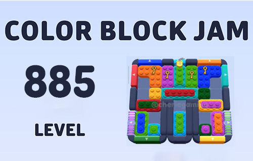 Color Block Jam Level 885 challenges players with a maze-like grid full of tight passages, locked keys, and chained obstacles. At first glance, it looks overwhelming, but with smart planning, you can clear the stage efficiently. The biggest hurdles are the locked chains at the top and the multiple vertical and horizontal block placements that limit space.